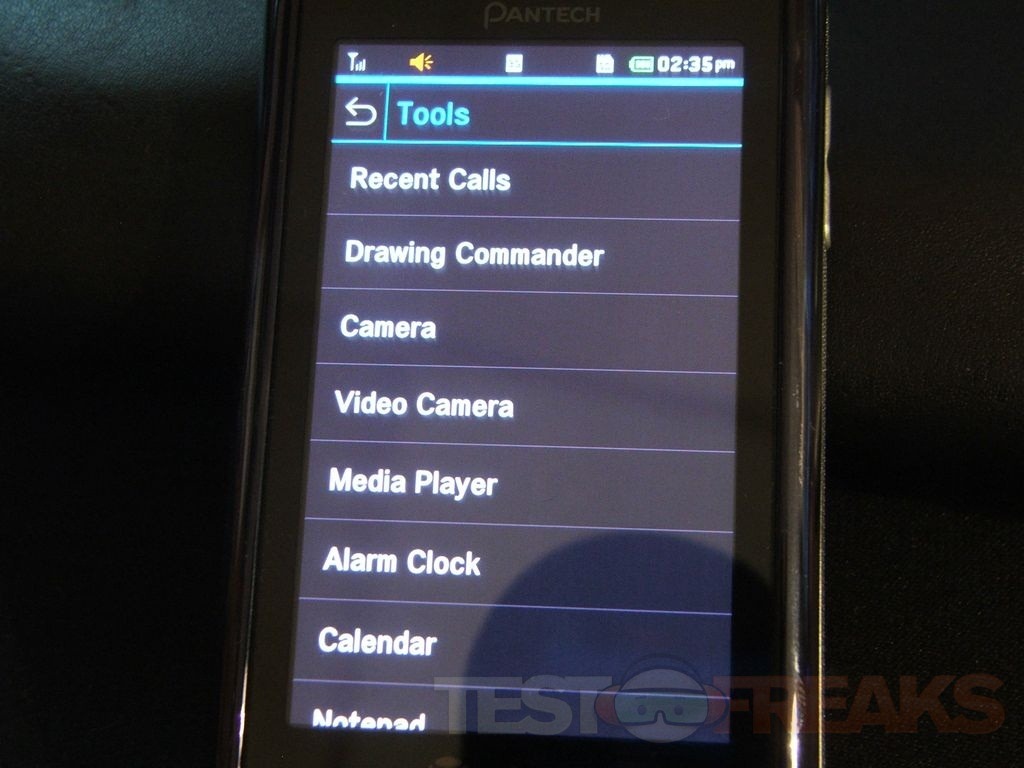 The camera is a 3mp one but sadly there’s no flash. I’ve noticed this that with most Pantech phones there is no flash and I have to wonder why. Here’s the interface with the settings expanded. The familiar stuff is all here.