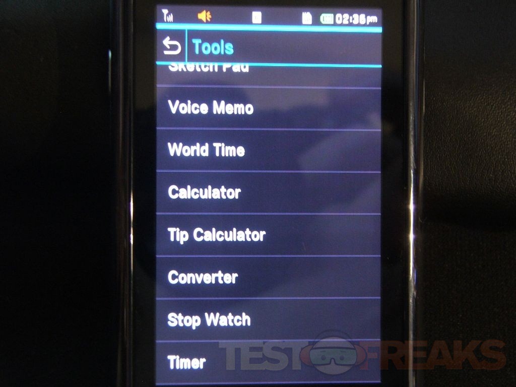 There are a few decent and useful apps installed and the ‘apps’ for Facebook and Twitter are actually just browser shortcuts. Some of these are also listed under Tools along with others like a Tip Calculator, Sketch Pad, Stop Watch, and a Timer.
