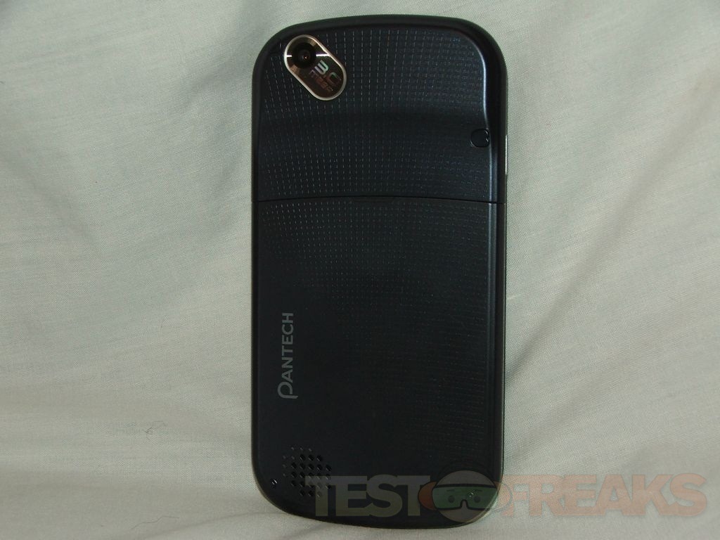 The back of the phone is textured and angled, you’ll find the battery cover and the 3mp camera but no flash.