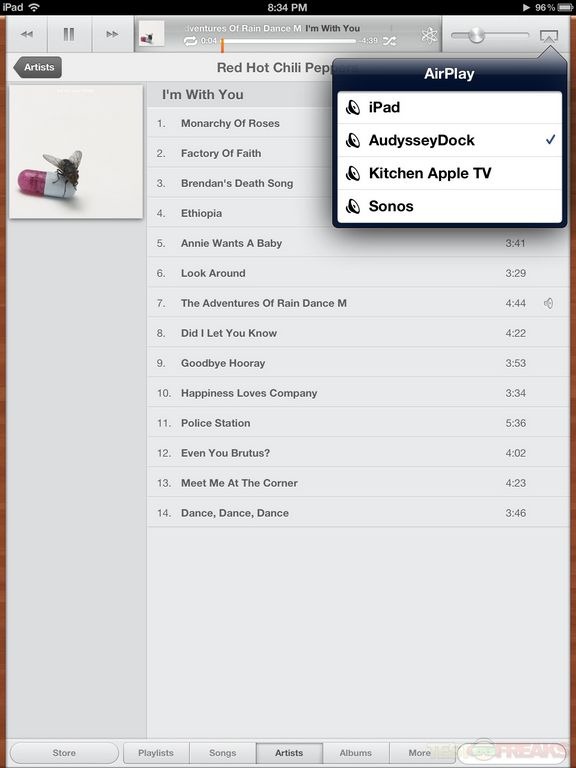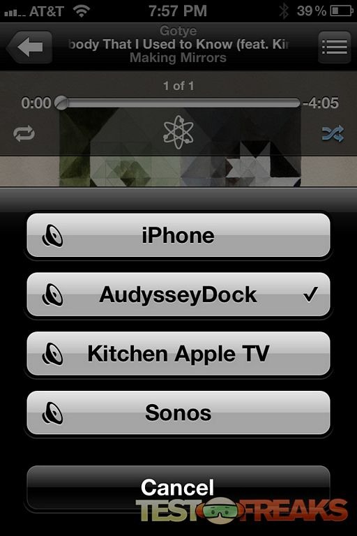 Using the Audyssey Audio Dock Air in conjunction with AirPlay is as simple as selecting the device after clicking on the AirPlay icon found on the lower right of most Apple devices and apps.