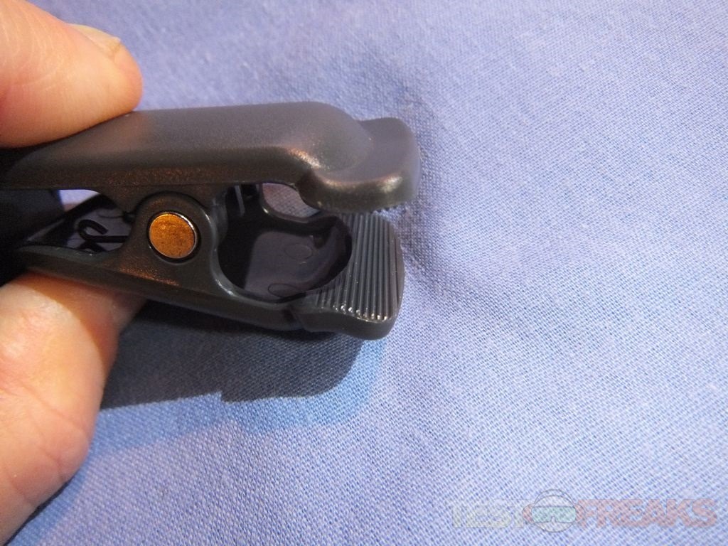 It comes shipped with a sticker over the over the switch to prevent the light coming on during shipping. The Clamplight Mini that I got for review is the same green and dark gray as the original Clamplight but you can get other color combinations. The main body is always the dark gray, only the ring and switch are different colors. Besides the green you can also pick from orange, black and blue. The light is about four inches long or about 10cm so it’s not large at all. It’s made of plastic of course so it’s very lightweight and durable.