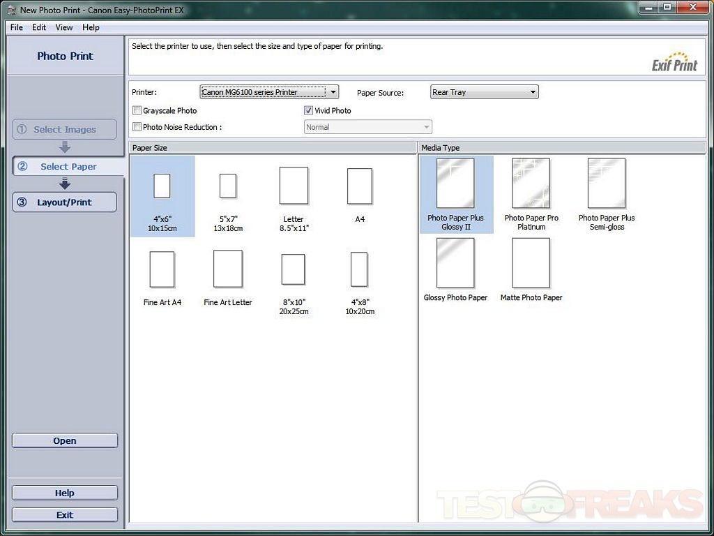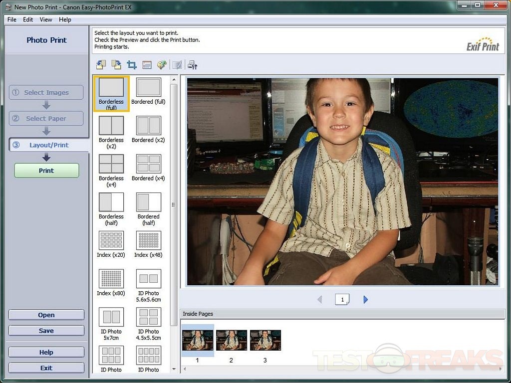 I used the PC interface to print some pictures. In the interface you’ll find many options for printing paper styles and photo layouts.