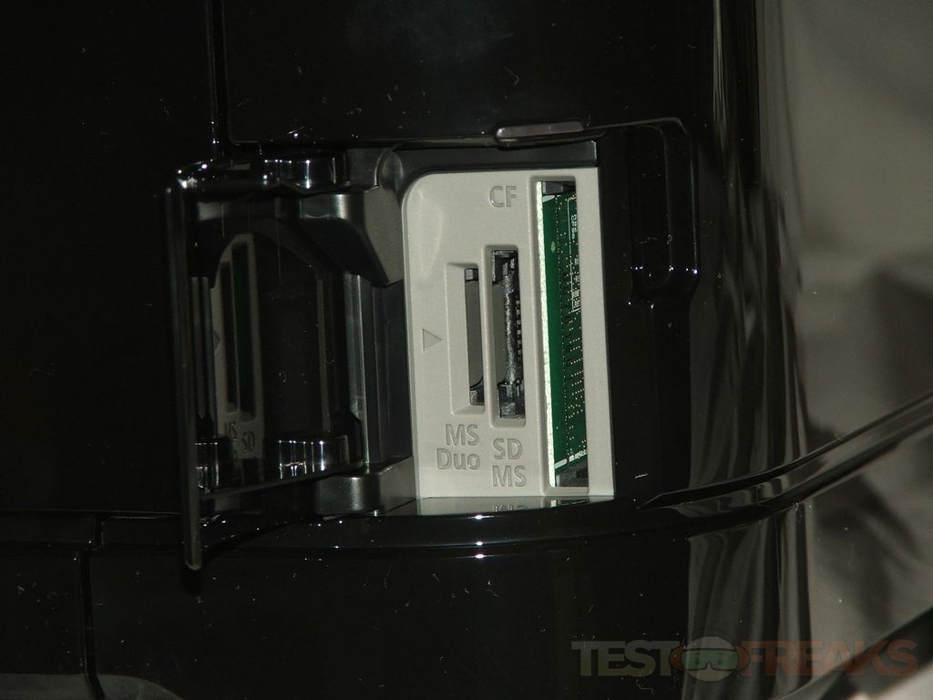 Next to the output tray you’ll find a small door with the card reader inside and then below that is a USB port. The USB port just seems to be in an odd place.