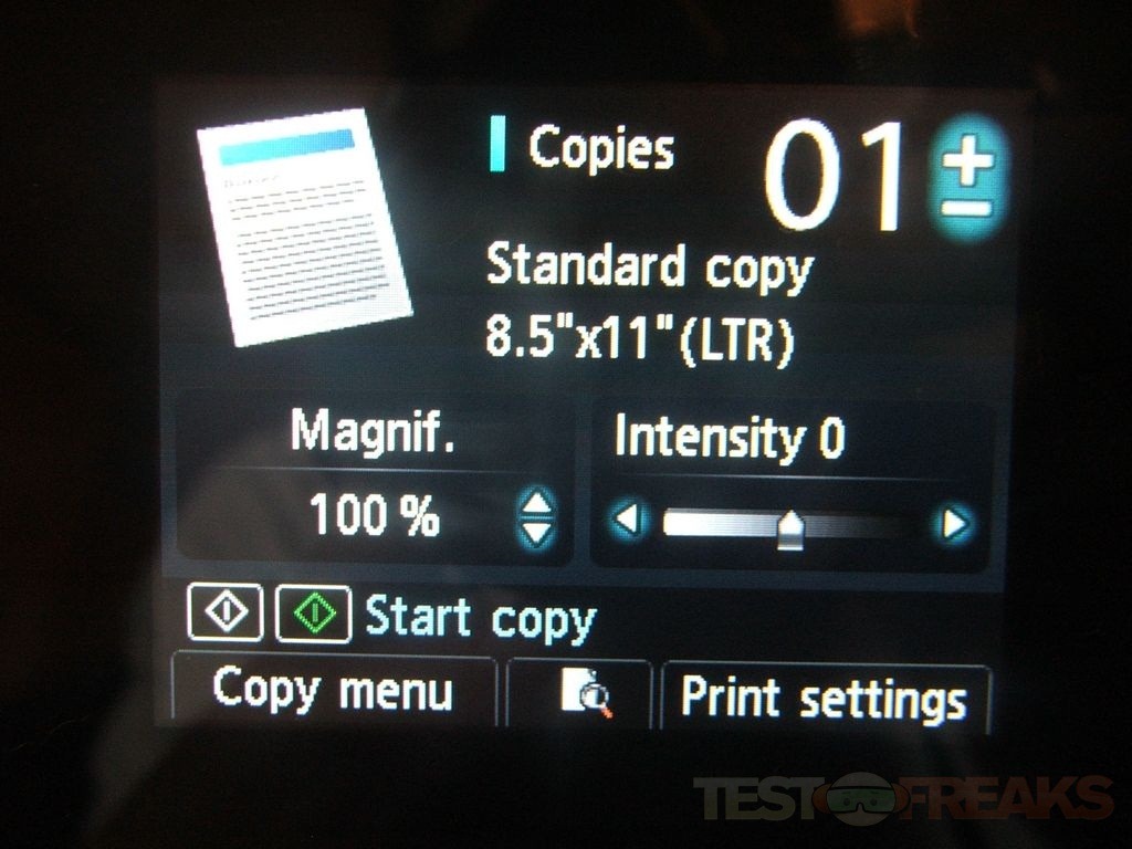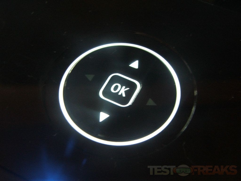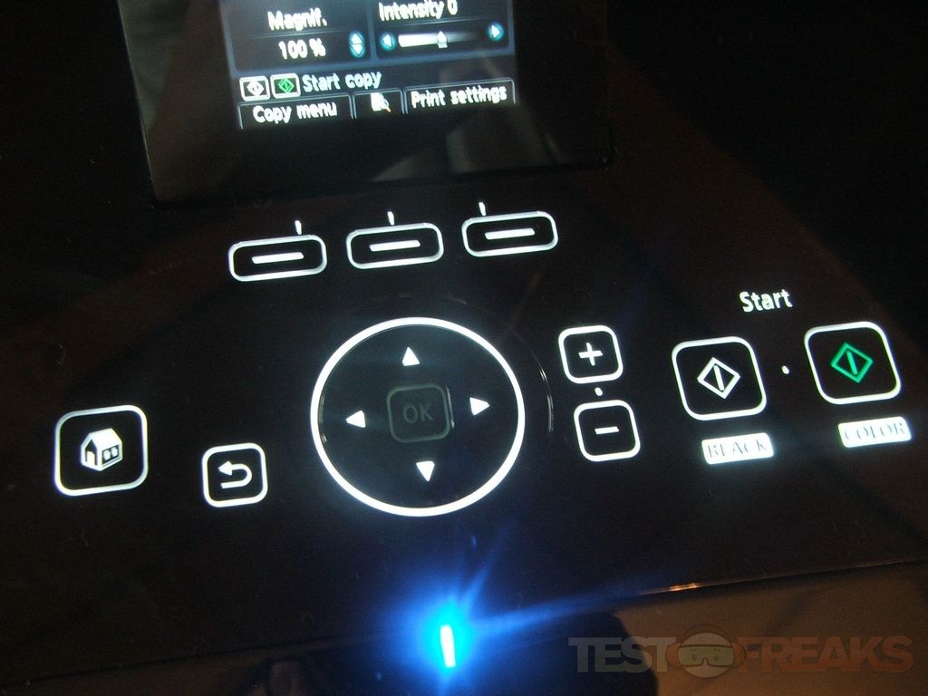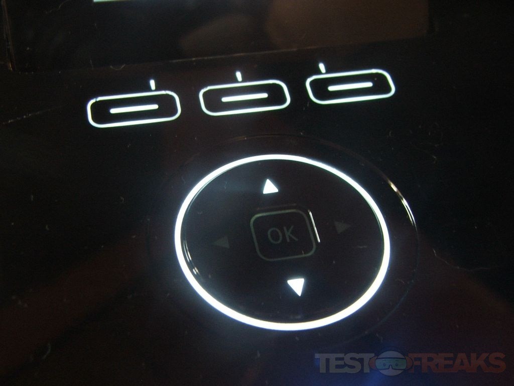 When you’re doing something like making a copy more buttons will be active, and the Home and Back will always be there to access. Essentially the printer lights up which buttons you’ll need to use for what you’re doing. The buttons are extremely sensitive, actually I might say they’re overly sensitive honestly. I found by playing with it that you don’t even have to touch them, you can just put you finger very close and it will activate. The white circle isn’t for decoration actually, you can run your finger around it to navigate.