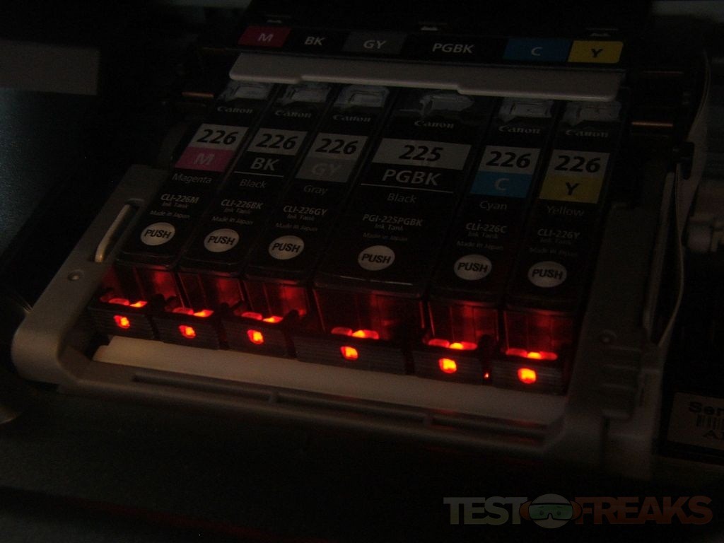 Let’s start with the installation, first thing install the print head and ink cartridges. There are red LEDs that let you know the cartridges are installed correctly.