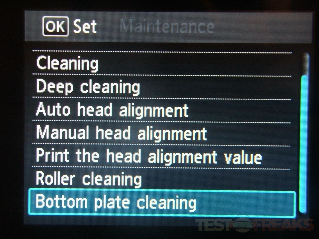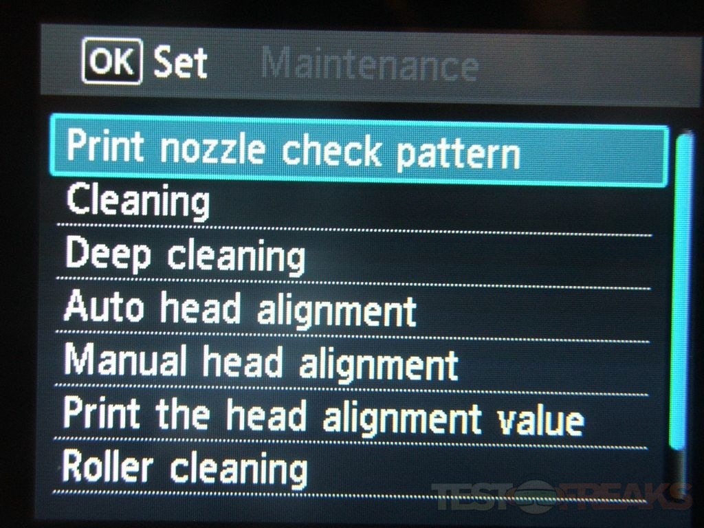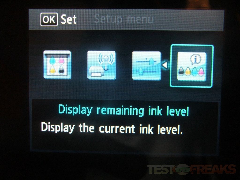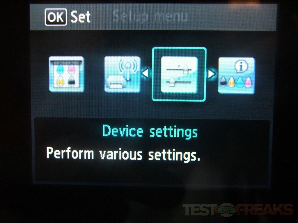 Let’s take a look at the settings. There’s four main options, Maintenance, Wireless Lan Setup, Device Settings and Display Remaining Ink Level.