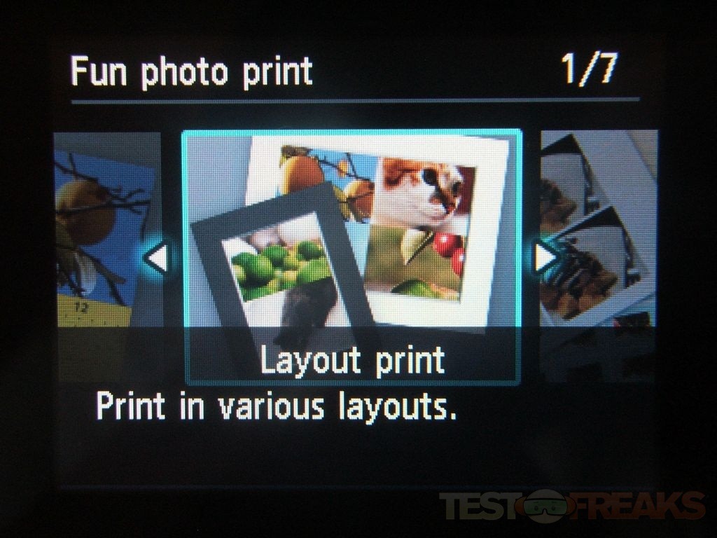 Here’s the Fun Print options, which aren’t really what I would call Fun… For all of these you can just use a memory card, USB drive or your camera with pictures on it.