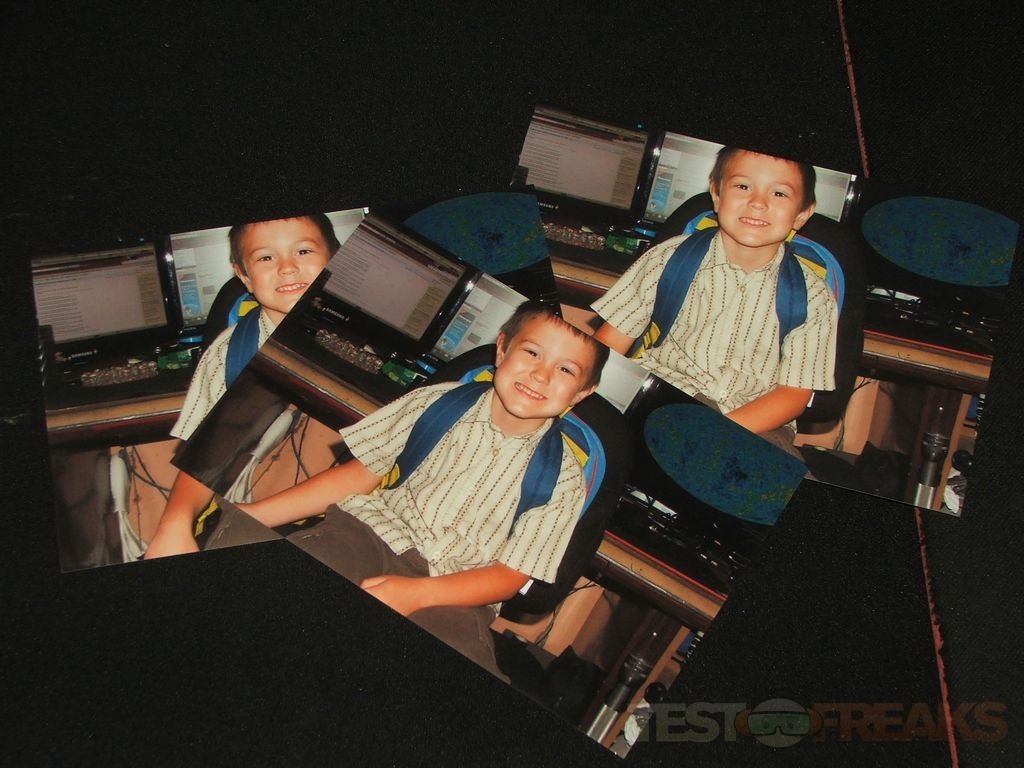 I used the 4×6 glossy photo paper that came with it actually, three sheets so three pictures. I printed them on photo or high quality settings and they printed fairly fast actually. The print quality is just excellent. The pictures are actually my son on his first day of Kindergarten, so I gave a couple of them away and to Grandma and Mom and they were both impressed. Up until very recently my wife was still using a film camera and I can tell you that these prints looks just like those we got back from the photo lab. They’re incredible really, no line, no nothing they look like professional pictures.