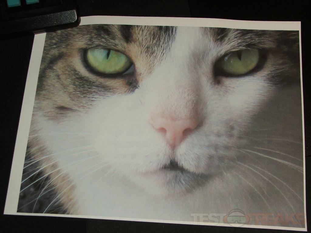 I just printed a quick sample of my cat Molly that was actually taken with a Canon camera a while back.