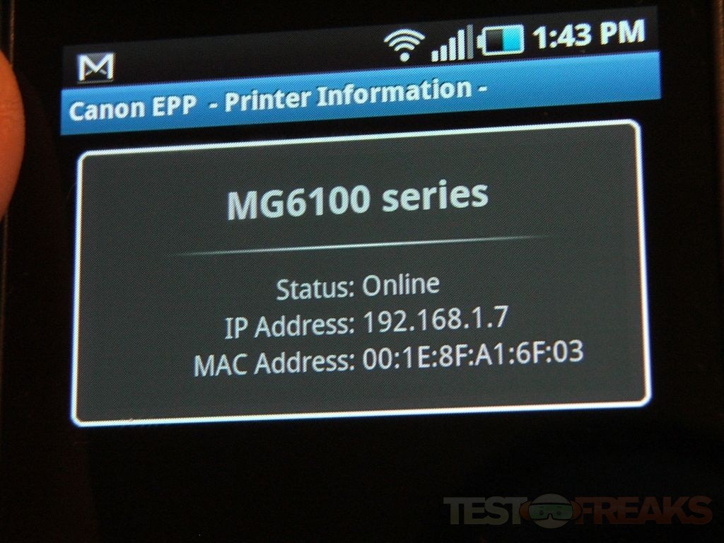 One the features that I really like about the MG6120 is Android support, specifically the ability to print wirelessly from your phone. Just go to the Android Marketplace and get the Canon Easy Photo Print app.