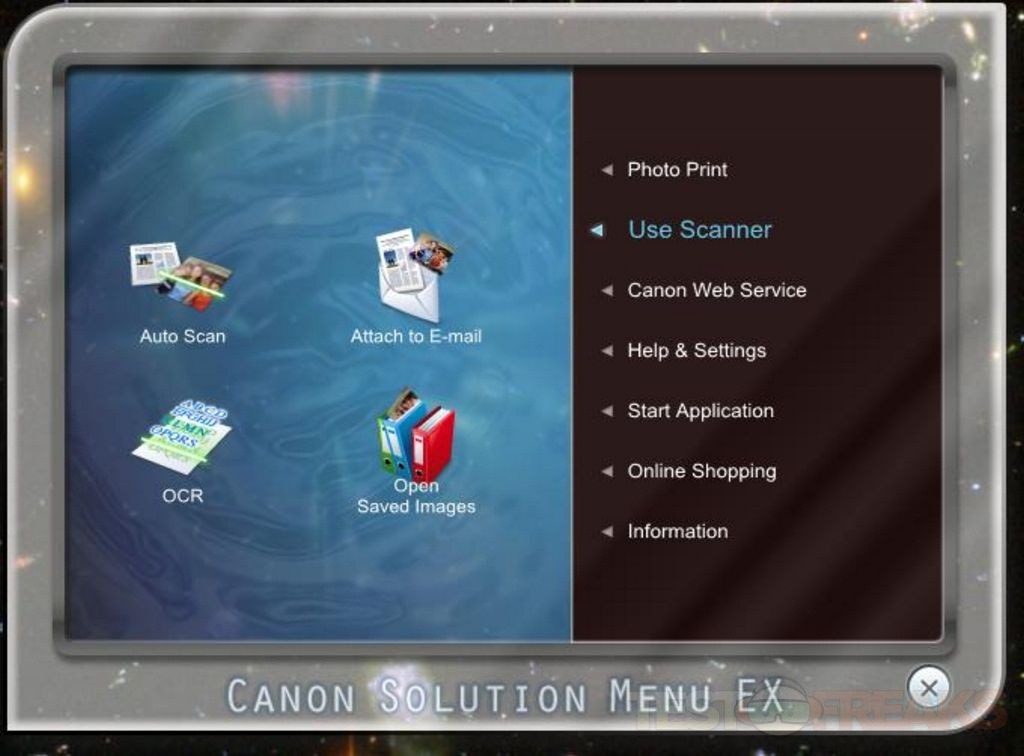 Once you get the software installed you’ll find something interesting in the right corner of your desktop above the time. There’s options for Auto Scan, Layout Print, Photo Print, Show Main Screen and Hide.