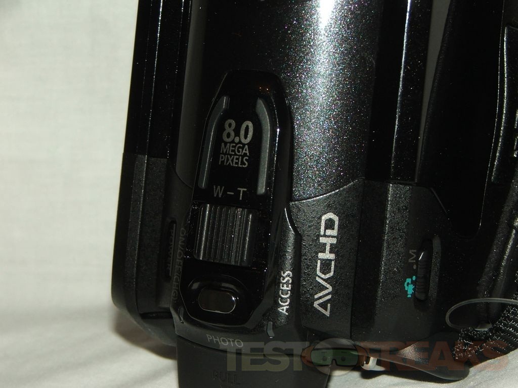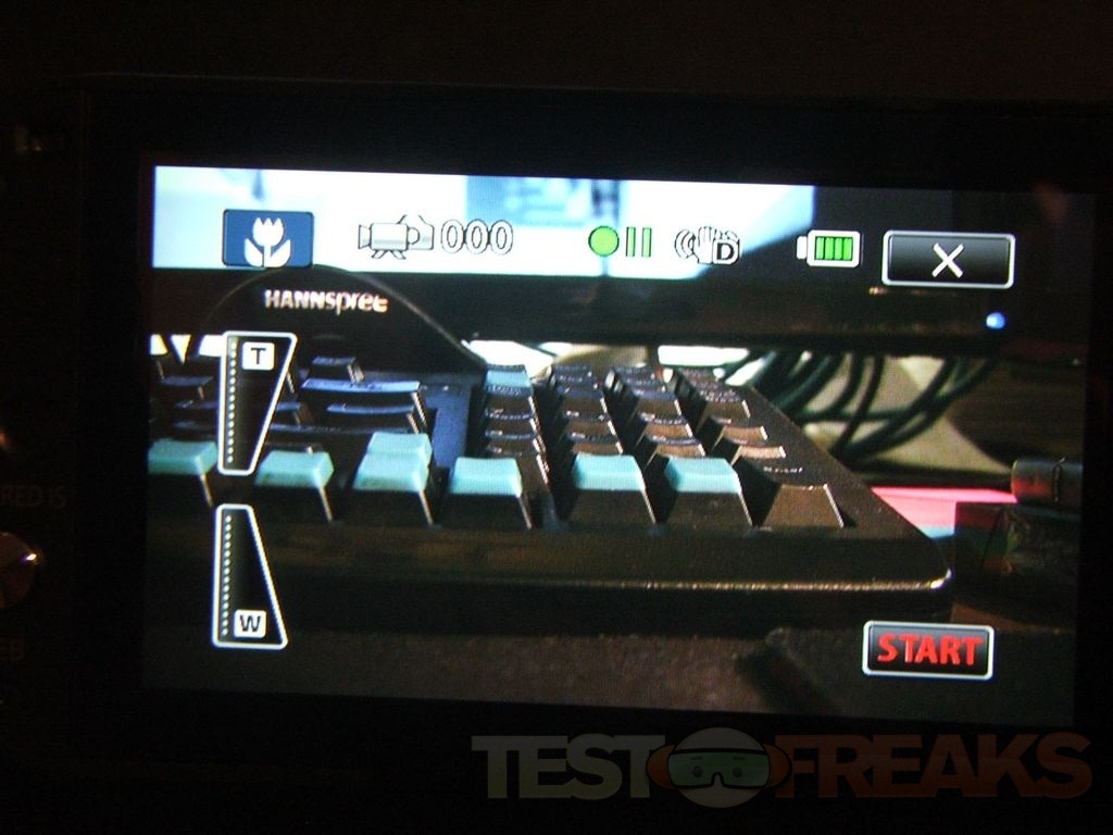 Looking at the LCD screen on the Vixia HF S21 you can touch the zoom button and a slider will appear which you can use for zooming instead of the mechanical zoom on top of the camera.