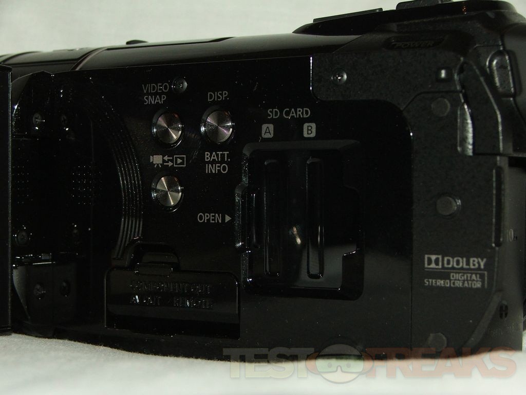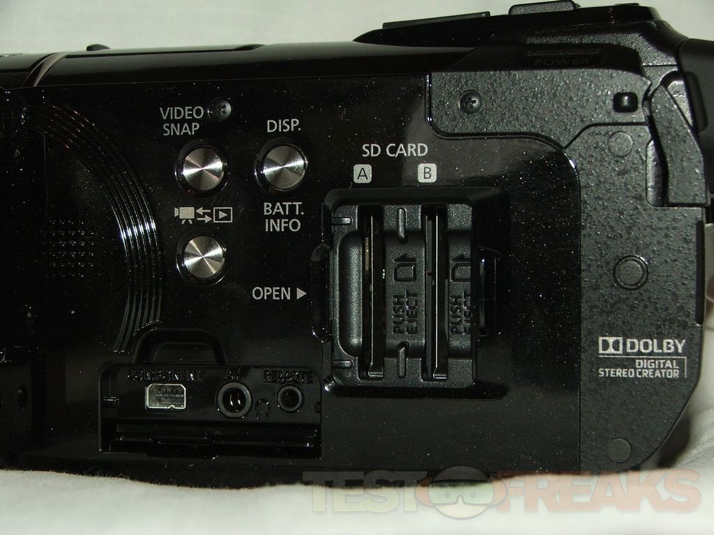 On the side of the camera you’ll find two memory card slots along with another door for USB, A/V and audio connections.