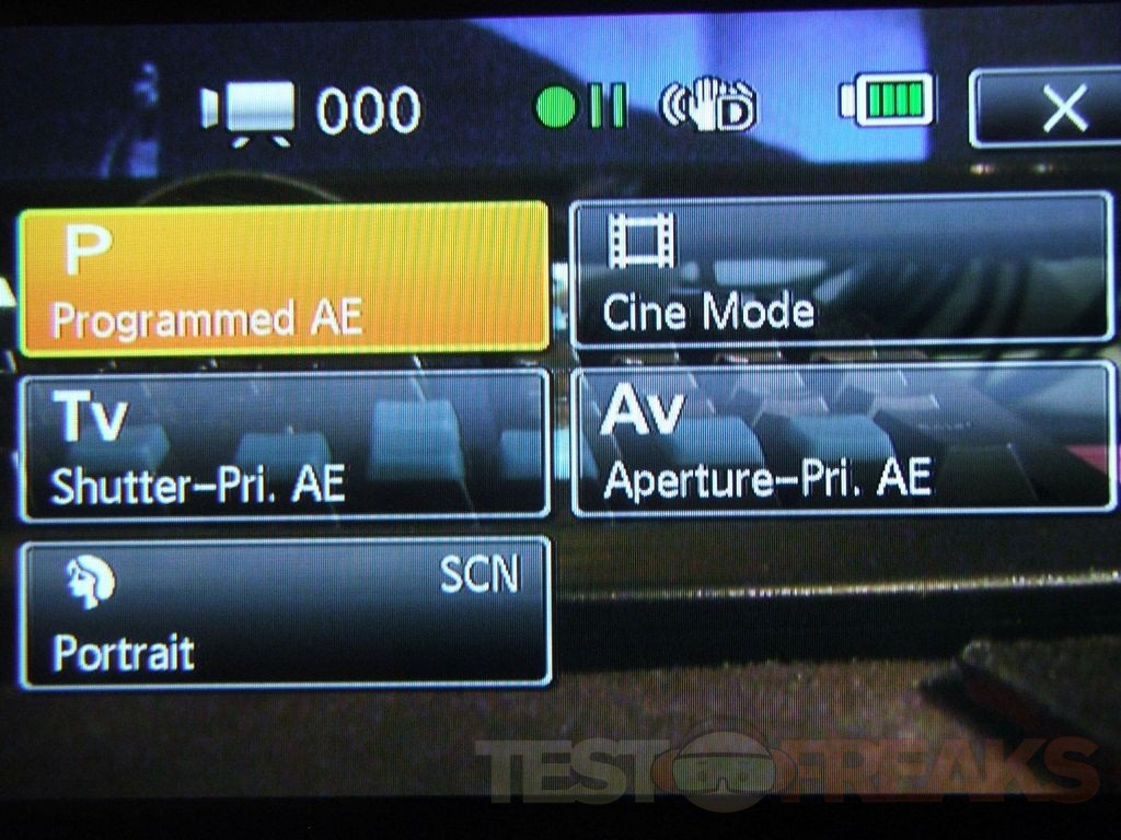 Programmed AE: Smart Auto, P, Av, Tv, Cine*, Portrait, Sports, Snow, Beach, Sunset, Night Scene, Low Light, Spotlight, Fireworks