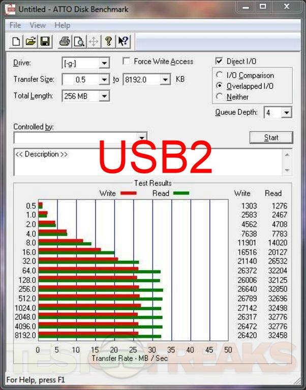 Ok, so I ran Atto Disk Benchmark on the drive in USB 2.0 and USB 3.0.