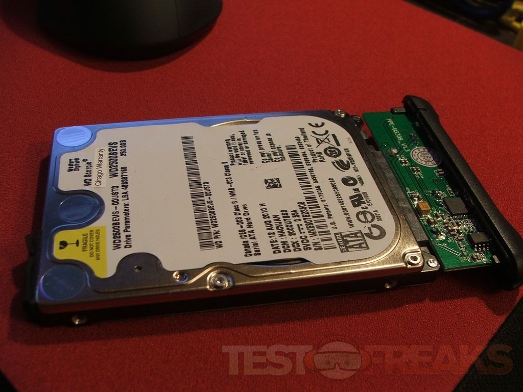 I decided to investigate a bit further by opening the CST6000 enclosure. It’s secured by Torx or Hex screws on the end and upon opening it I found a Western Digital Scorpio 5400Rpm drive inside.