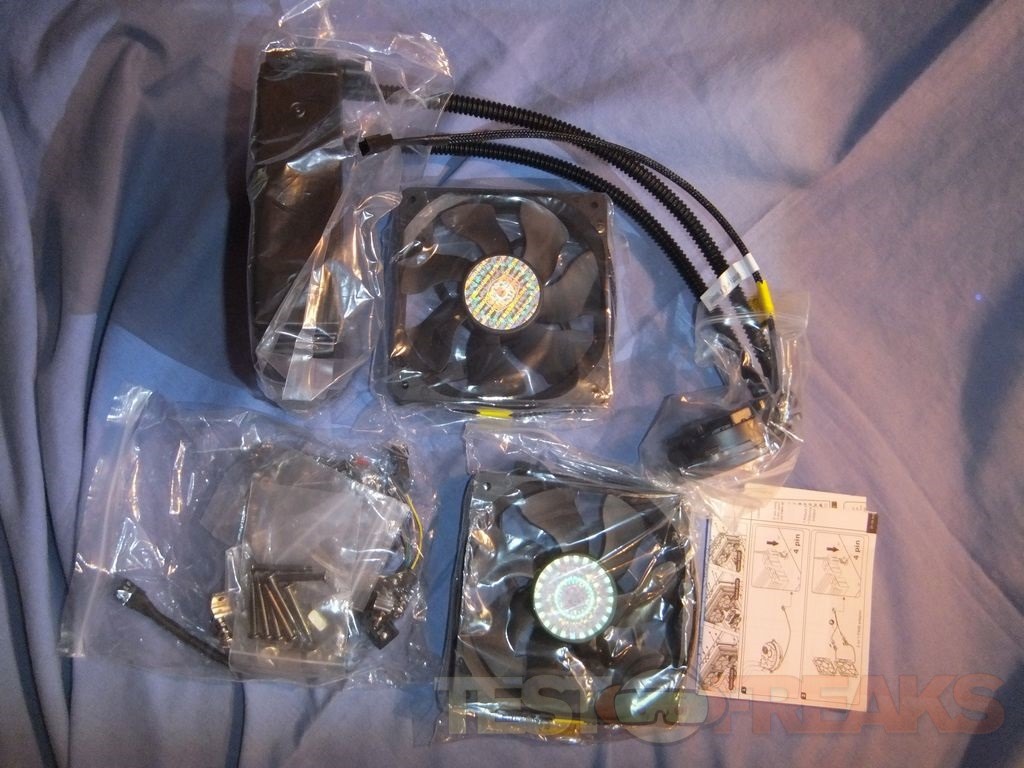 Once you unpack the box you’ll find two fans, instructions, the Seidon 120XL itself and a bag full of bags and accessories.