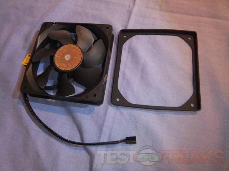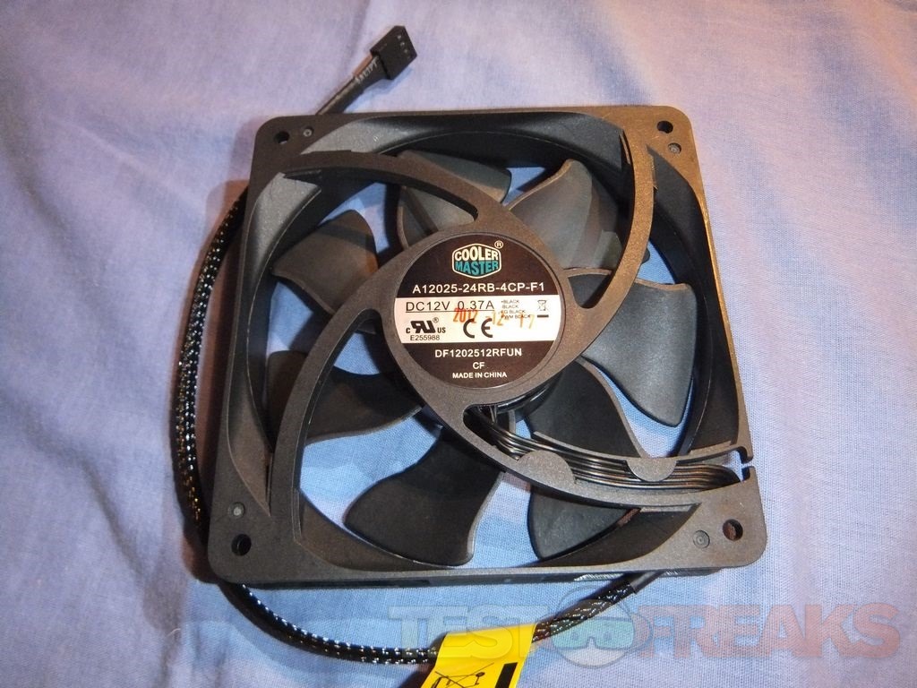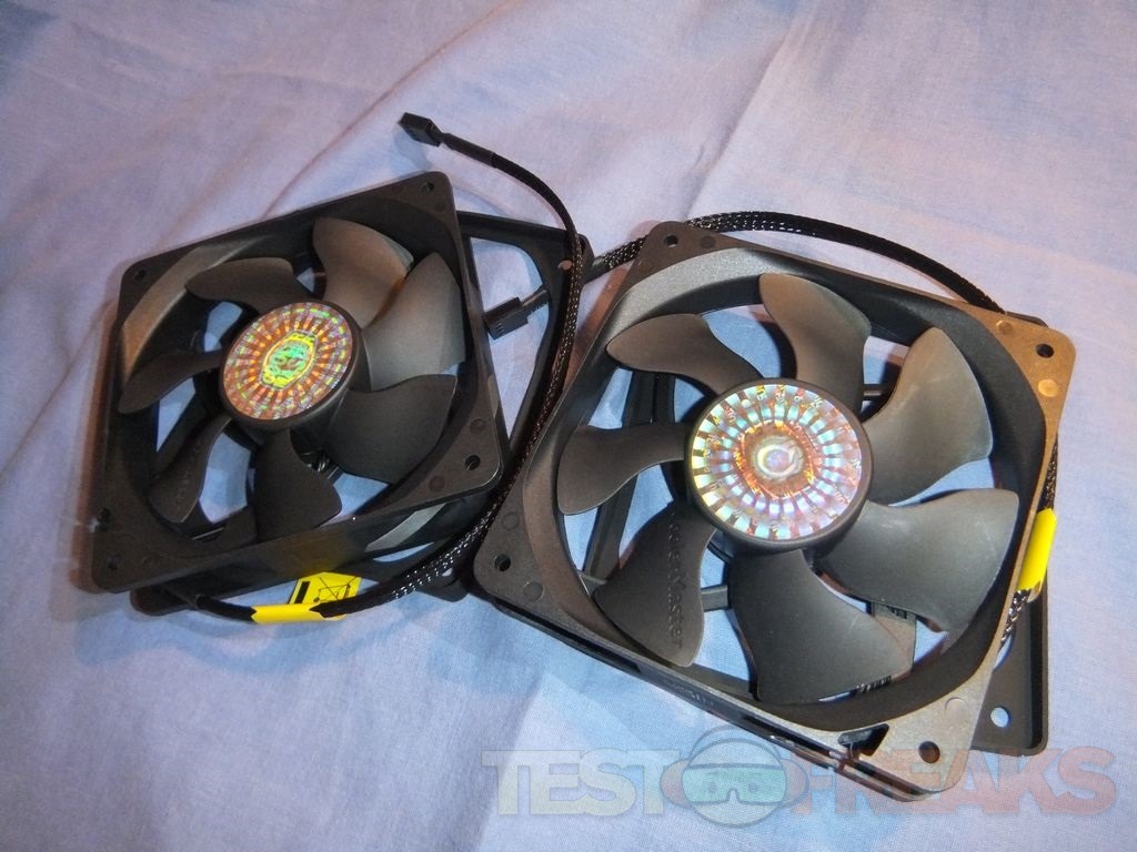 There are two 120mm fans included, but they also include rubber vibration dampeners for each of them. The two fans are model a12025-24rb-4cp-f1 which have a maximum speed of 2400rpm and a minimum speed of 600rpm, they are both PWM fans so they can be controlled automatically by your motherboard as the need arises.
