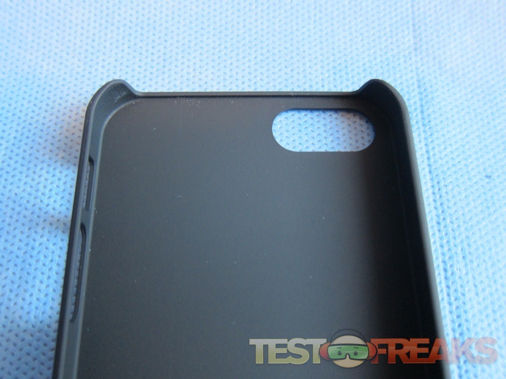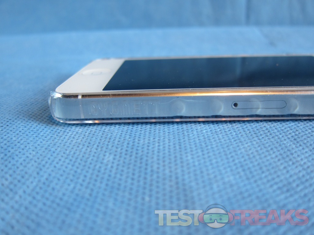 On the left side of the case is an opening for the volume buttons and mute switch, while on the bottom right side is an embossed Cygnett name. Both of the sides of the case have golf ball like divots to help keep a sturdier grip on the otherwise smooth slippery polycarbonate.