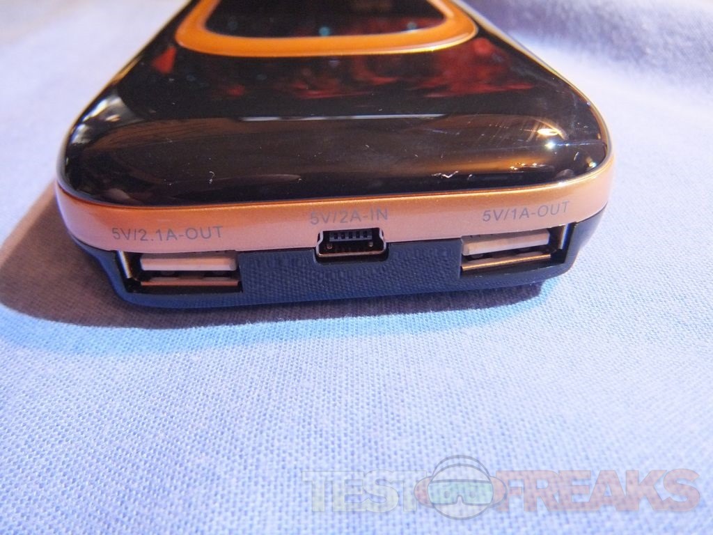 On the front end you’ll find three USB ports. The left port is a standard USB port but it provides 5volts with 2.1amps, while the right USB port provides 5volts and 1amp of power. The center USB port is the mini style and it’s used for actually charging the iBag itself with the included AC adapter.