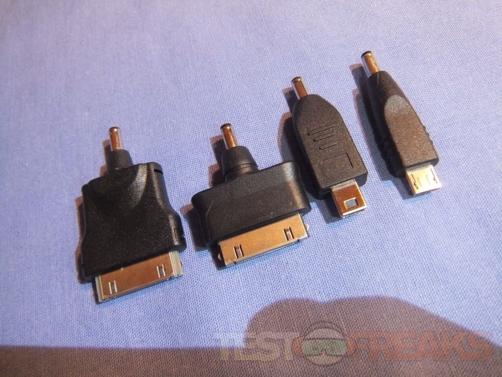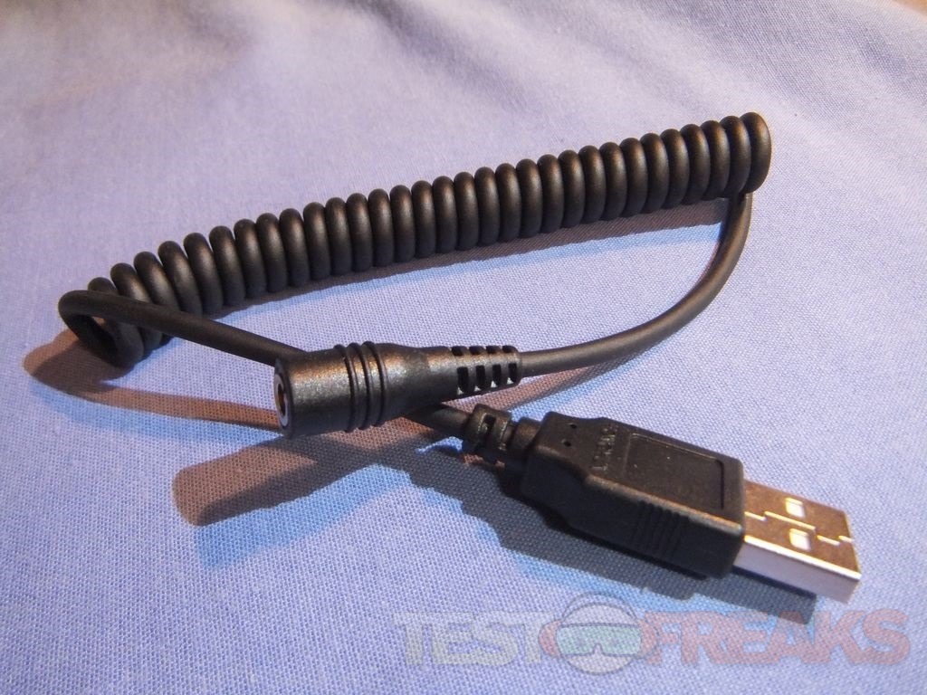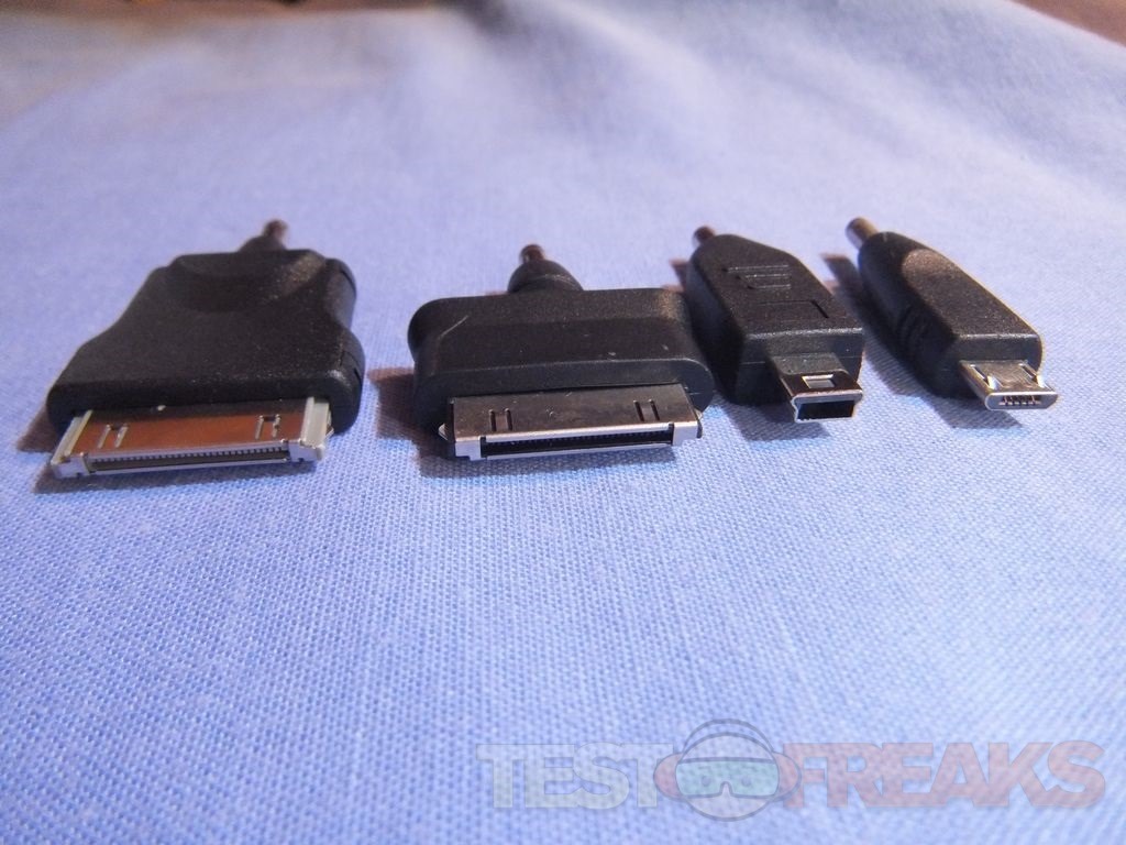 The cable included is the spring or expandable kind and on one end you’ll see a regular USB connection and then on the other is a female connector that goes with the included tips.
