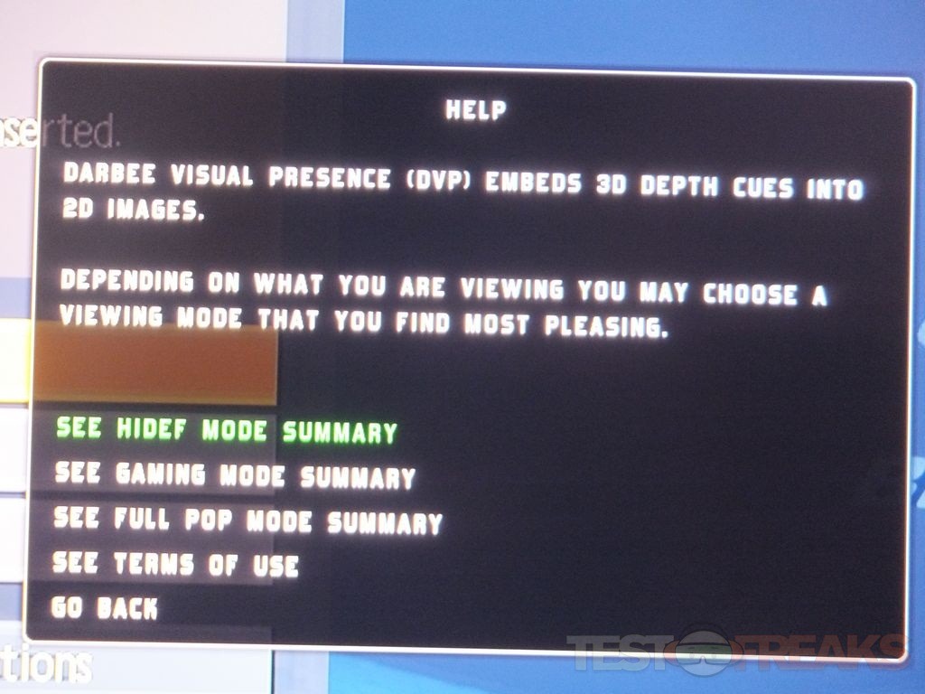 The Darblet has three viewing modes for Hi Def, Gaming and Full Pop. Each of them offer different enhancements for your viewing pleasure. I’m going to take a look at all of them in depth, at least I hope it’s in-depth enough to get the point across of just how the Darblet works and what it really does.