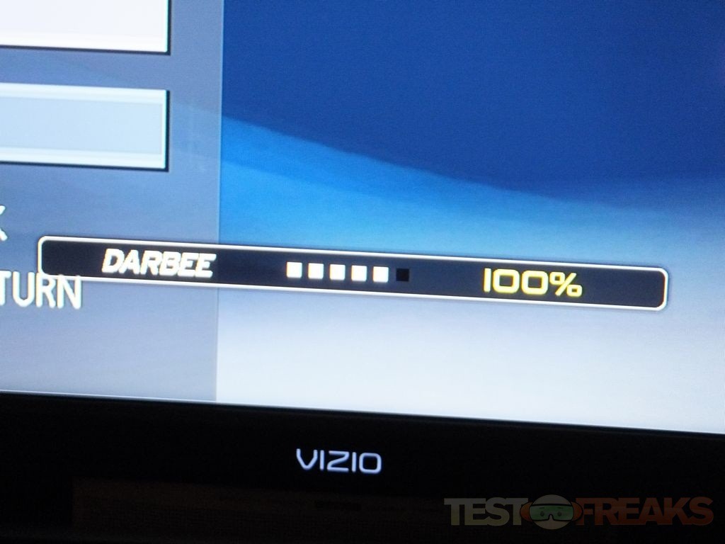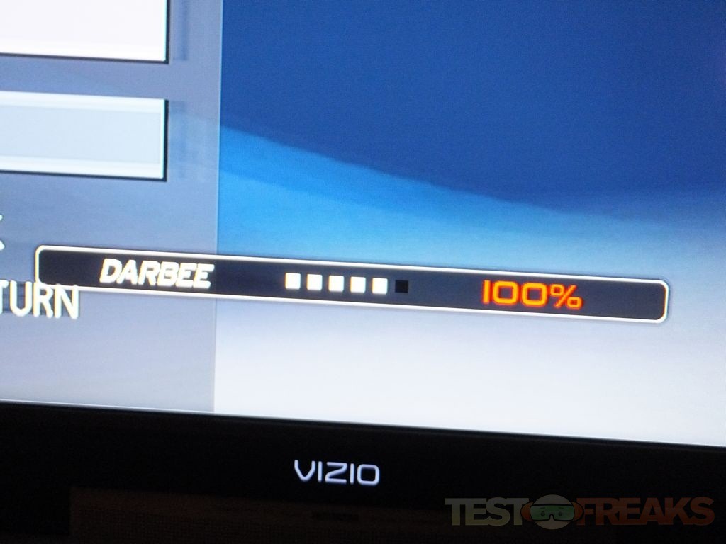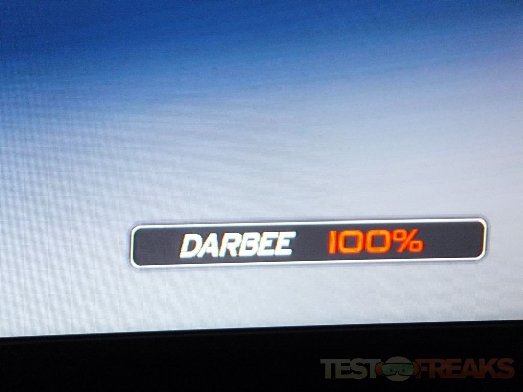The Darblet has a status indicator that can remain on-screen in the bottom right corner so you know what the status is. You can turn this off if you don’t like it as I have shown above in the menu selections. It’s color coded as well, red for Full Pop, green for Hi Def and yellow for Gaming modes so you know at a glance which you’re on. The picture below is Full Pop at 100%.