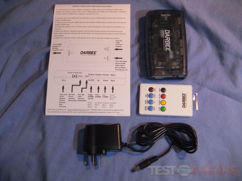 Once you unpack everything you’ll find an instruction sheet, power supply, remote and the Darblet itself.