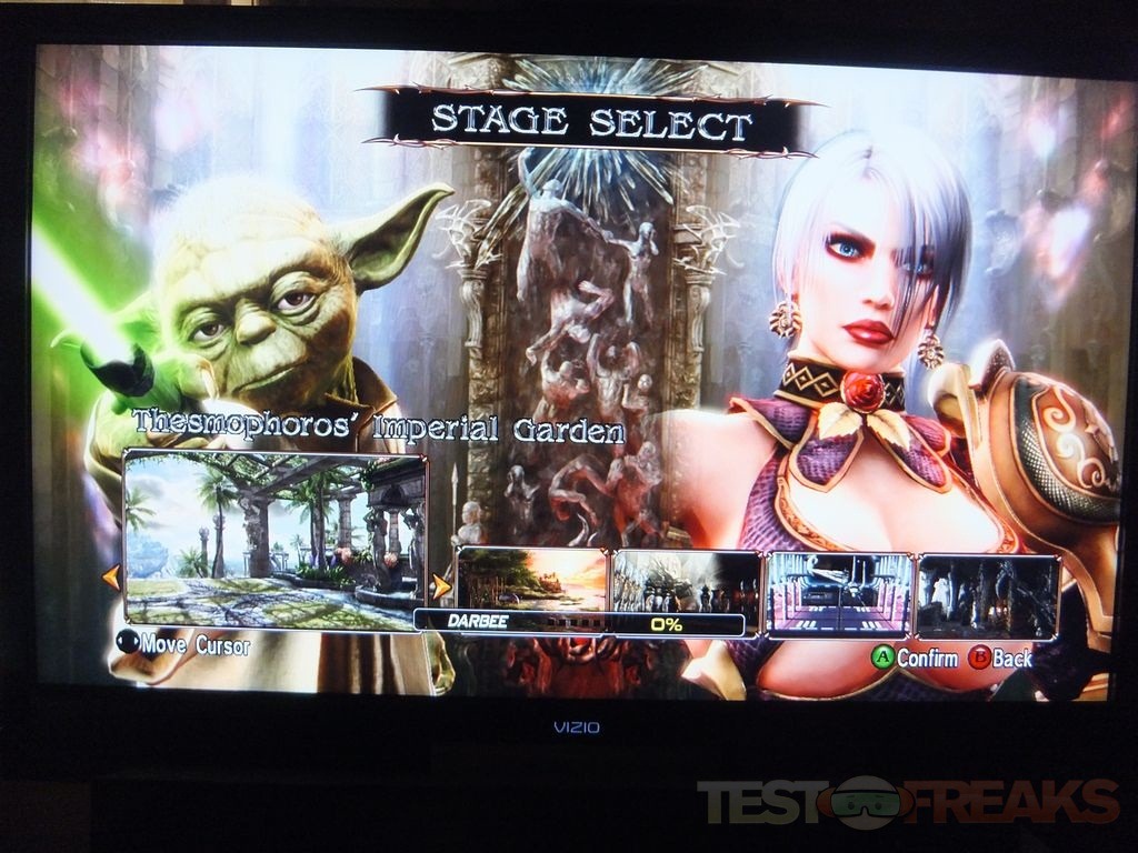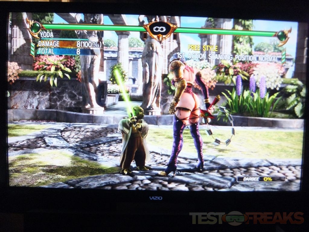 Let’s stick with gaming devices and the PlayStation 3, I just grabbed a random game from my shelf and it turned out to be Soul Calibur so that works I guess. So here’s two examples for you with 0% and 100% with the Darblet: