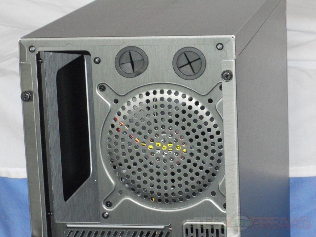 As with most cases these days, the PSU is mounted on the bottom. The PCI slots are vented and removable and replaceable . The side panels are held in place with thumbscrews for easy access.