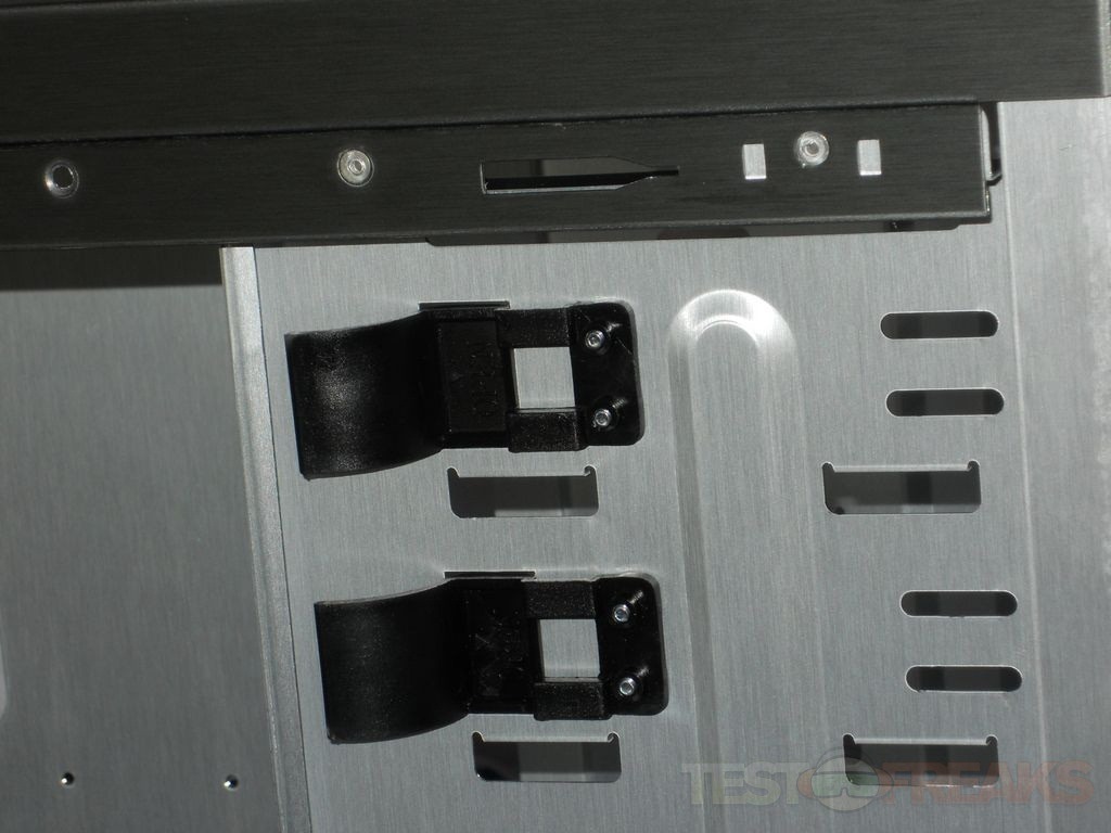 Above the HDD cage is where your 5.25” devices go, there’s room for four of them but only two use the tool-less clip system.