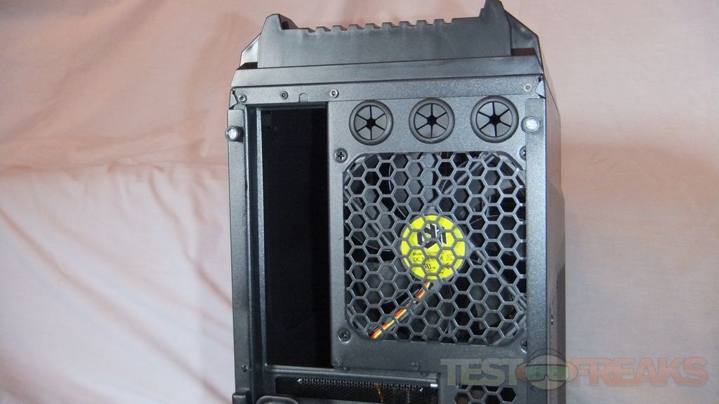 Then here’s the top of the case where the two fans are mounted, it’s nice to see there’s fan grills on them.