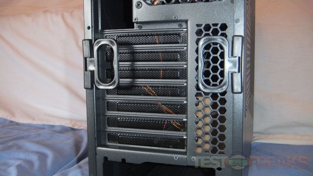 Moving around to the back you’ll find the common ports and slots and holes like you’d find on most cases these days.