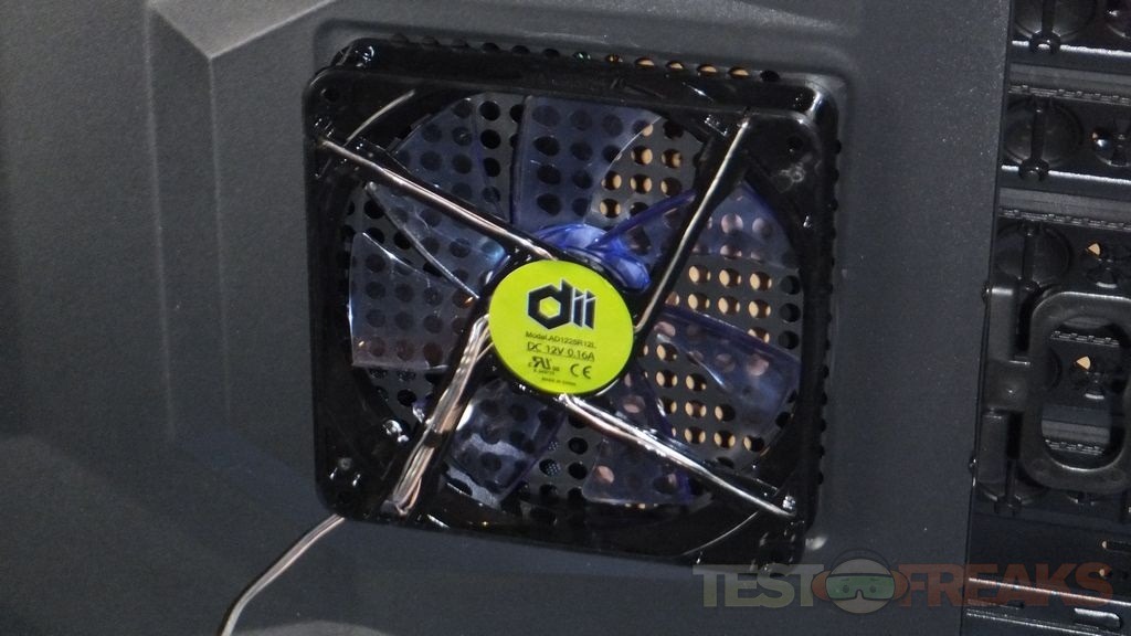 Behind the USB ports you’ll fine two 120mm fans pre-installed.