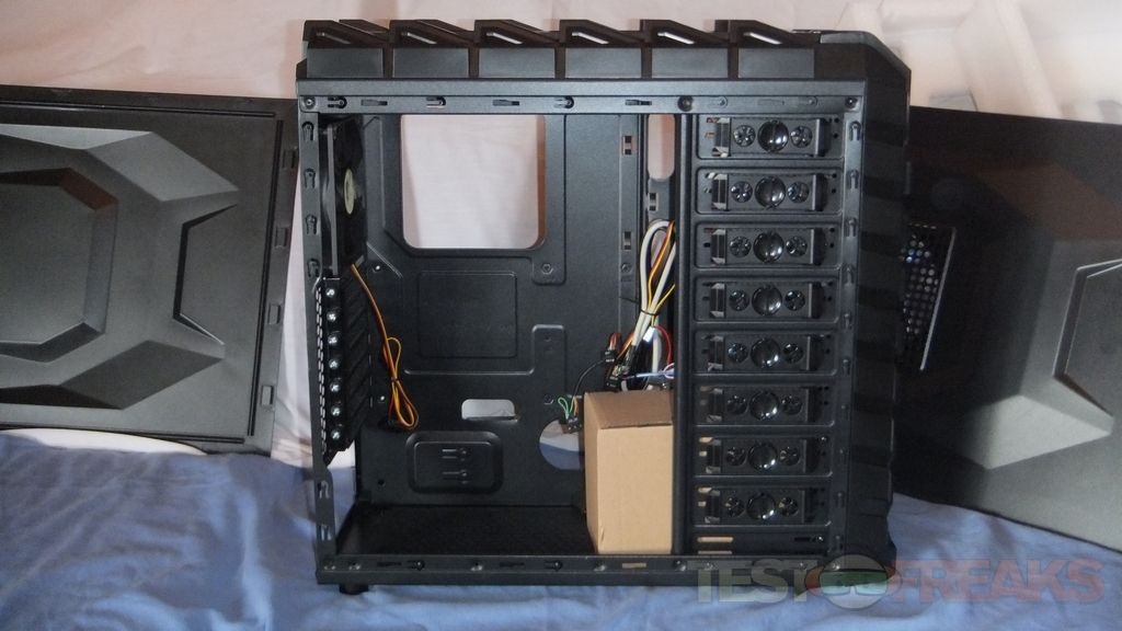The first thing you’ll notice I think when you remove the panel is the rather large brown box in the case, it’s the accessory box.