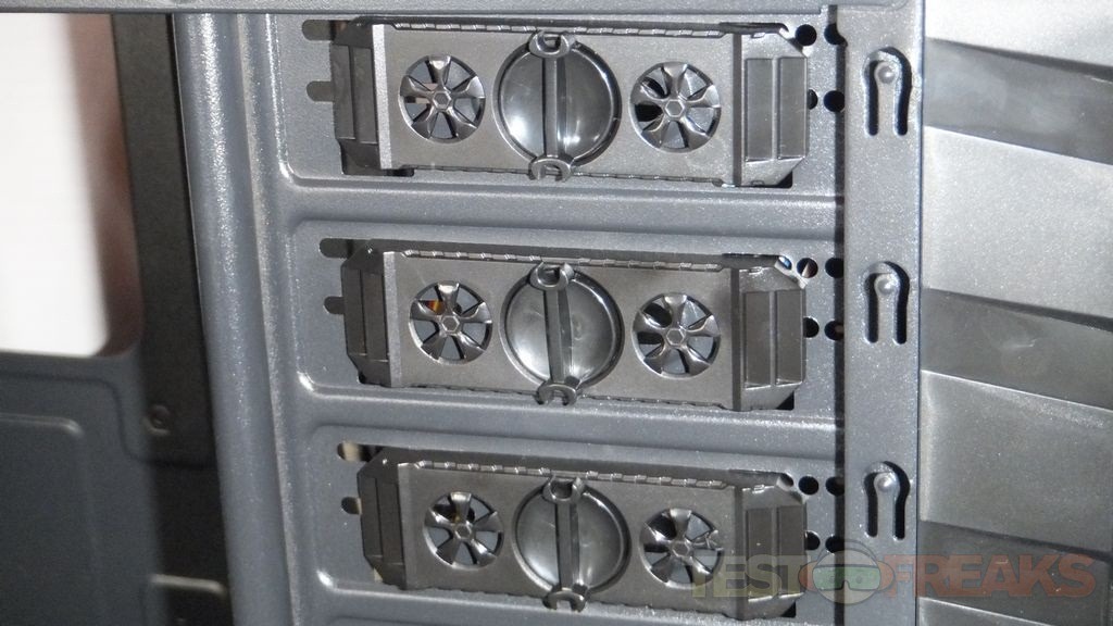 The trays are used to install your hard drives and they can be used to mount them horizontally. The trays also have holes in them for additional fans as they can be used as fan holders for the front of the case. The users manual also suggests you can mount a hard drive on one side and a fan on the other to help keep your hard drive cool.