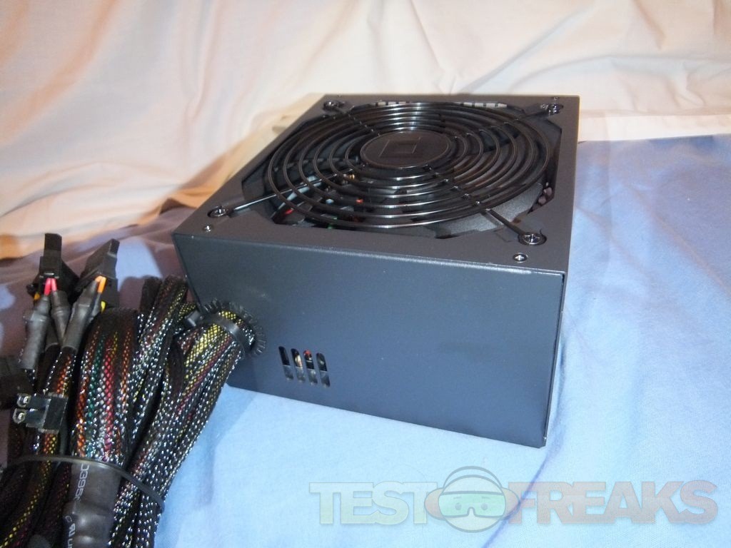 On the bottom is the cooling fan which is 140mm and thermal controlled, meaning the hotter the PSU gets the faster the fan spins.