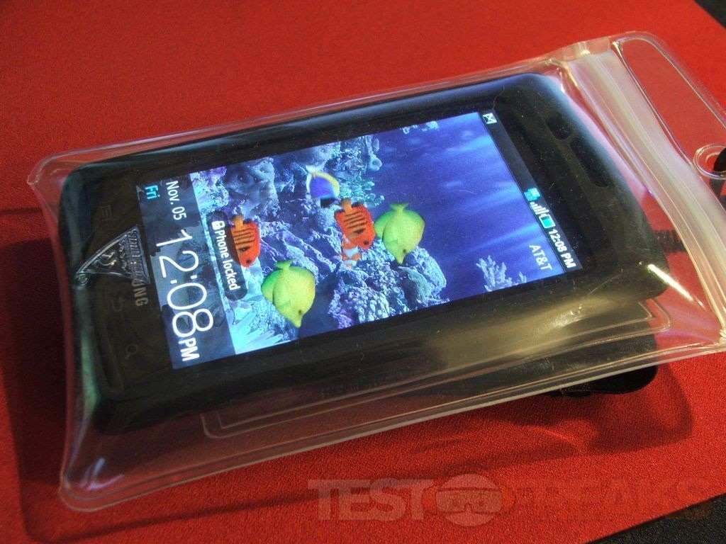 It fit just fine in the Dry Doc 2 and I could access most of the functions, I can make calls yes, but I found that pushing certain buttons actually pushes another button. Like when I pressed the home button the Search button would light up like I pressed it and search would open. Why, I don’t know. I think part of the problem is the Seattle Sports logo as it sits right on the buttons of my phone.