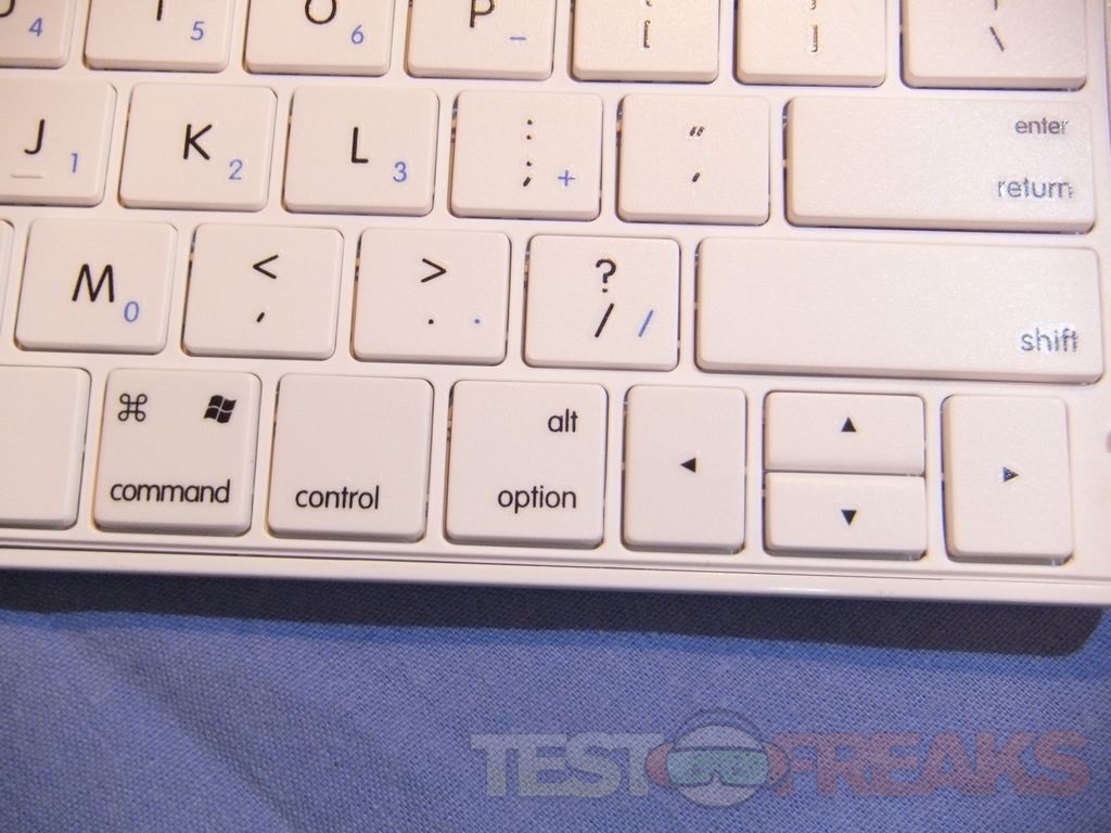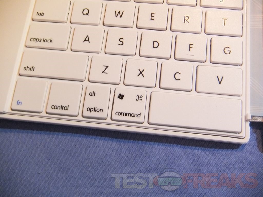 On the left side you’ll find five functions keys that are also multi-function for things like search. Towards the bottom is the FN key to access this special operations along with a half-size space bar, control key and a command key.