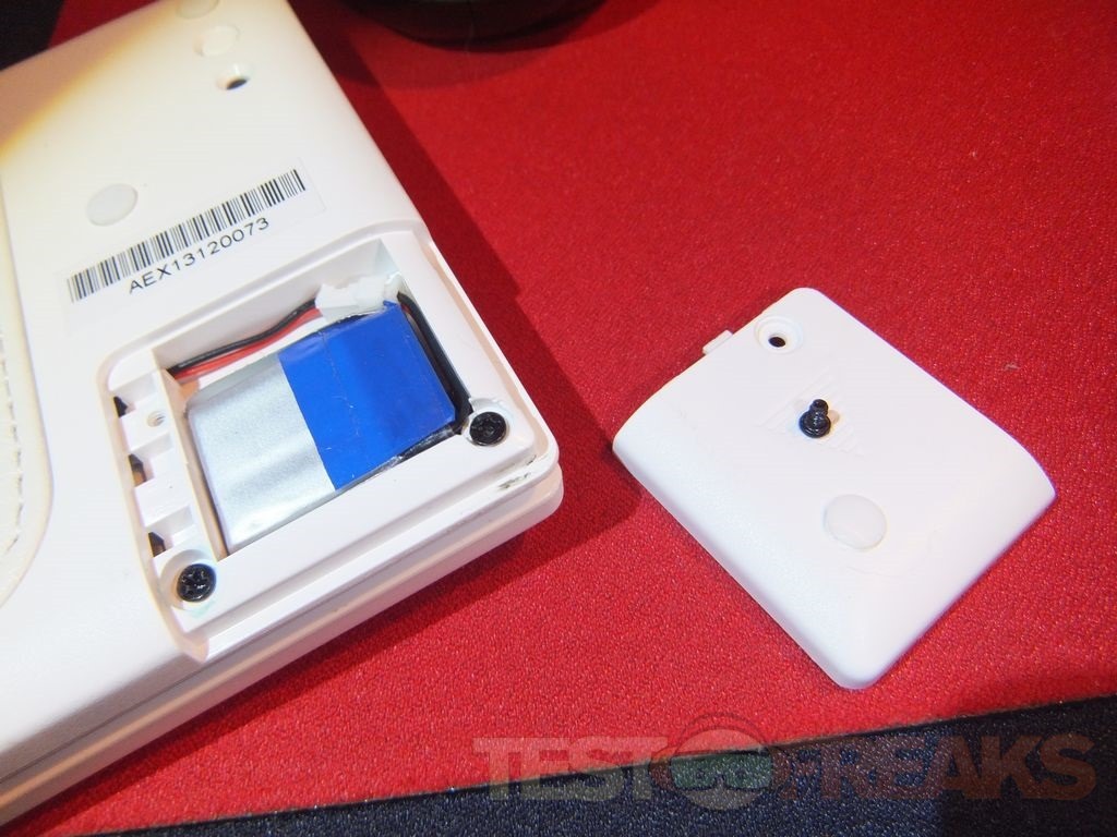 The small door is held securely in place with a single screw that beneath one of the feet, I just had to take it off to see what was in there. This is the battery compartment where it appears there is a user replaceable lithium ion battery. To replace the battery you just need to unplug it, the hard part will be finding one to fit, but it’s nice to know it can be replaced.