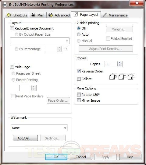 In the second screen above you’ll notice an option for Quiet Printing, the printer is quiet actually even if you don’t use that option. You’ll have to enable 2-Sided Printing if you want to the ability.