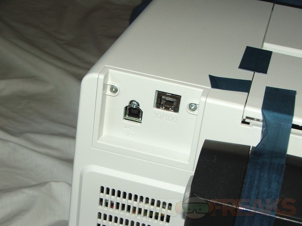 The printer of course comes covered with tape that will have to be removed. There’s a piece of packing cardboard in the bottom where the paper tray is inserted.