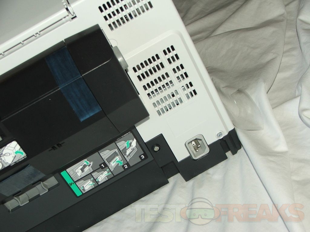 On the back of the printer you’ll find access panels and the double sided printing attachment, so right out of the box you’ve got double sided printing.