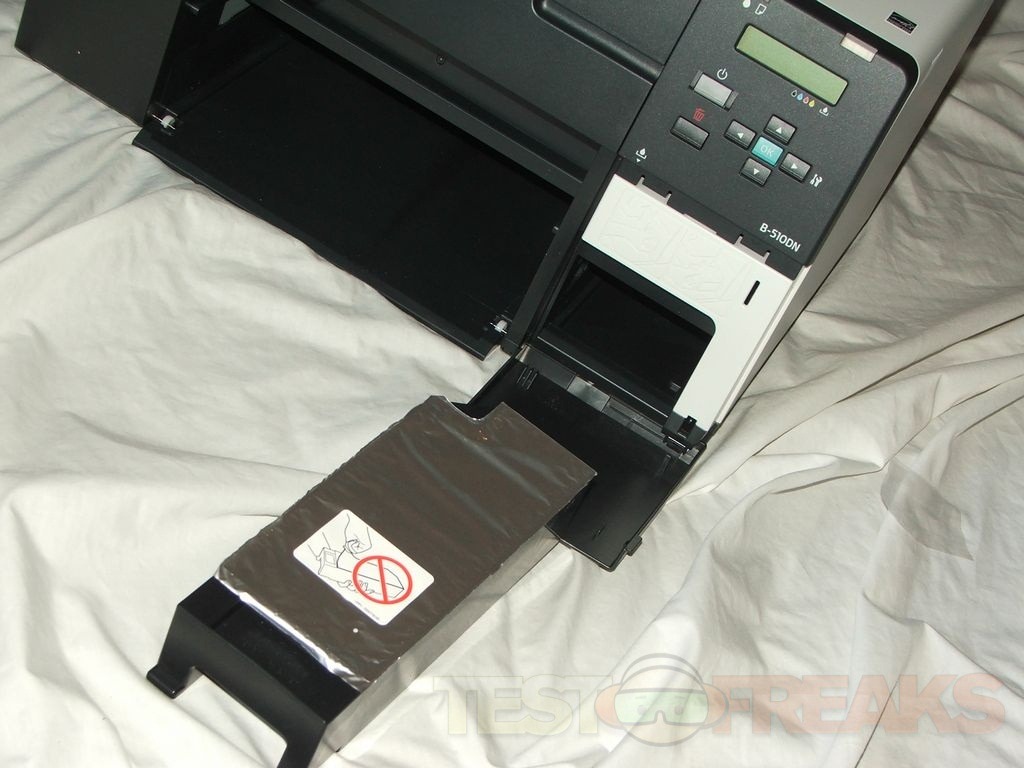 The B-510DN was very easy to install. Many printers require you to use the USB connection first for the network connection, but not this one, just plug in the Ethernet cable and pop in the disc.