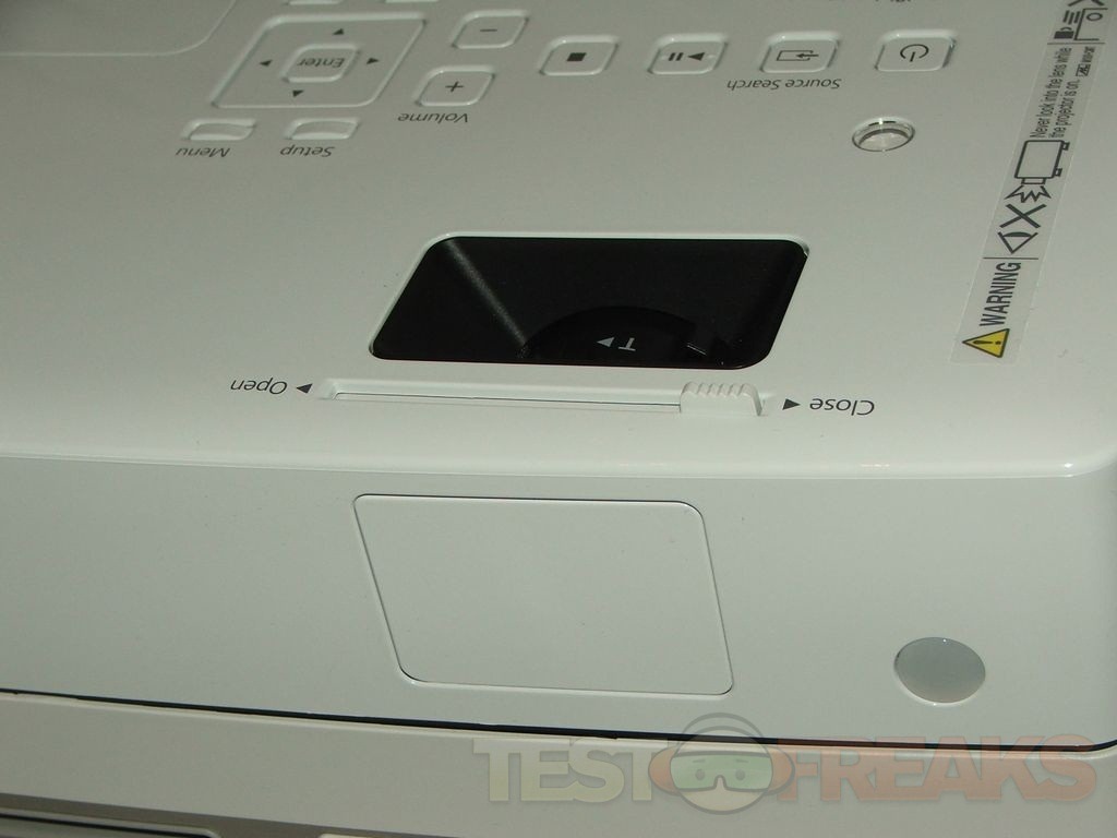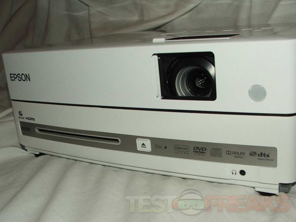The projector has built-in slot loading DVD player on the front.