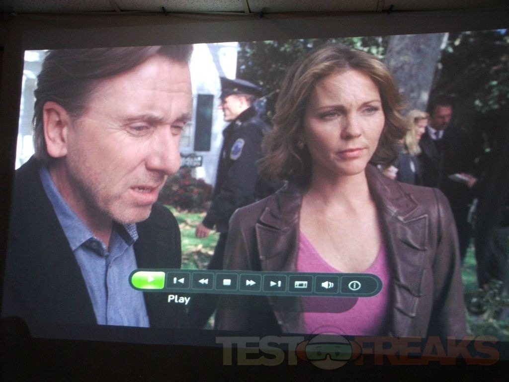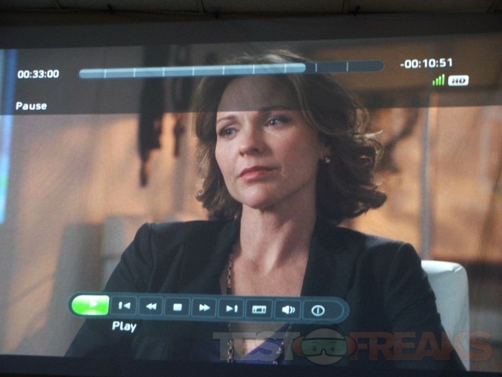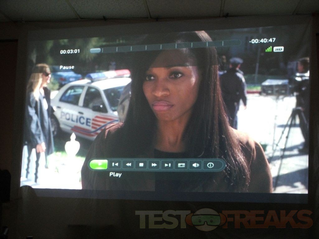 I played DVDs on the projector and I hooked up my Xbox360 via HDMI and watched some Netflix. here’s a few samples taken from an episode of ‘Lie To Me’. The details are actually nice, and the motion is very smooth with no issues.