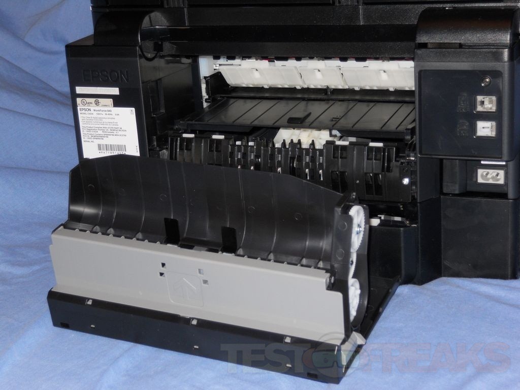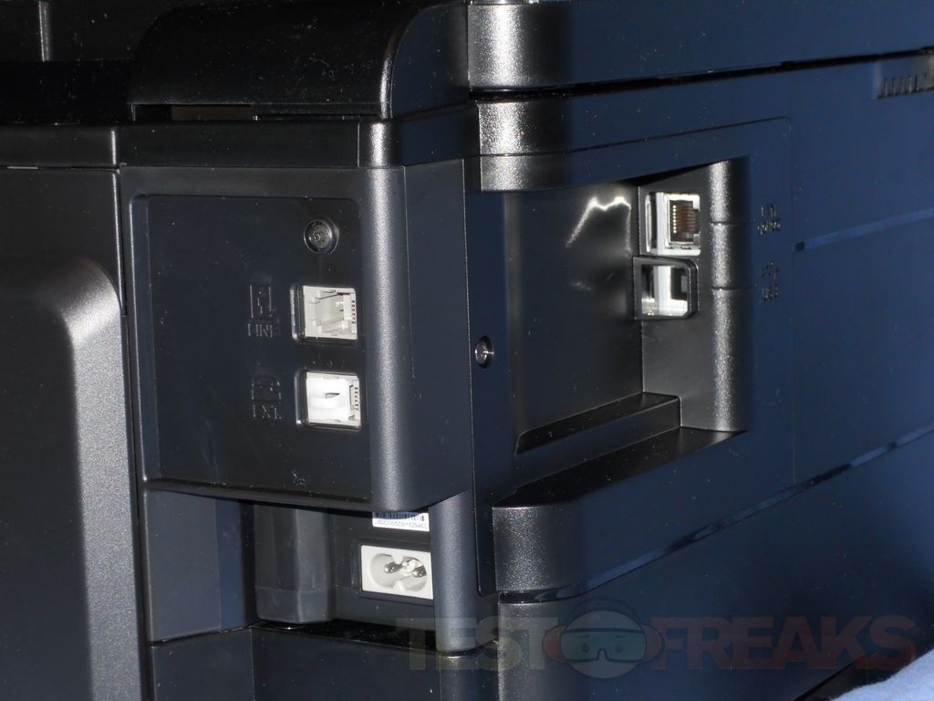 Moving to the back of the printer is where the connections for Ethernet, phone, USB and power are.