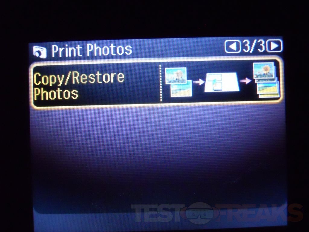Under Print Photos you’ll find View and Print, Print All, Print Greeting Cards, Photo layout Sheet, Proof Sheet, Slide Show and even an options for Copy/Restore photos.