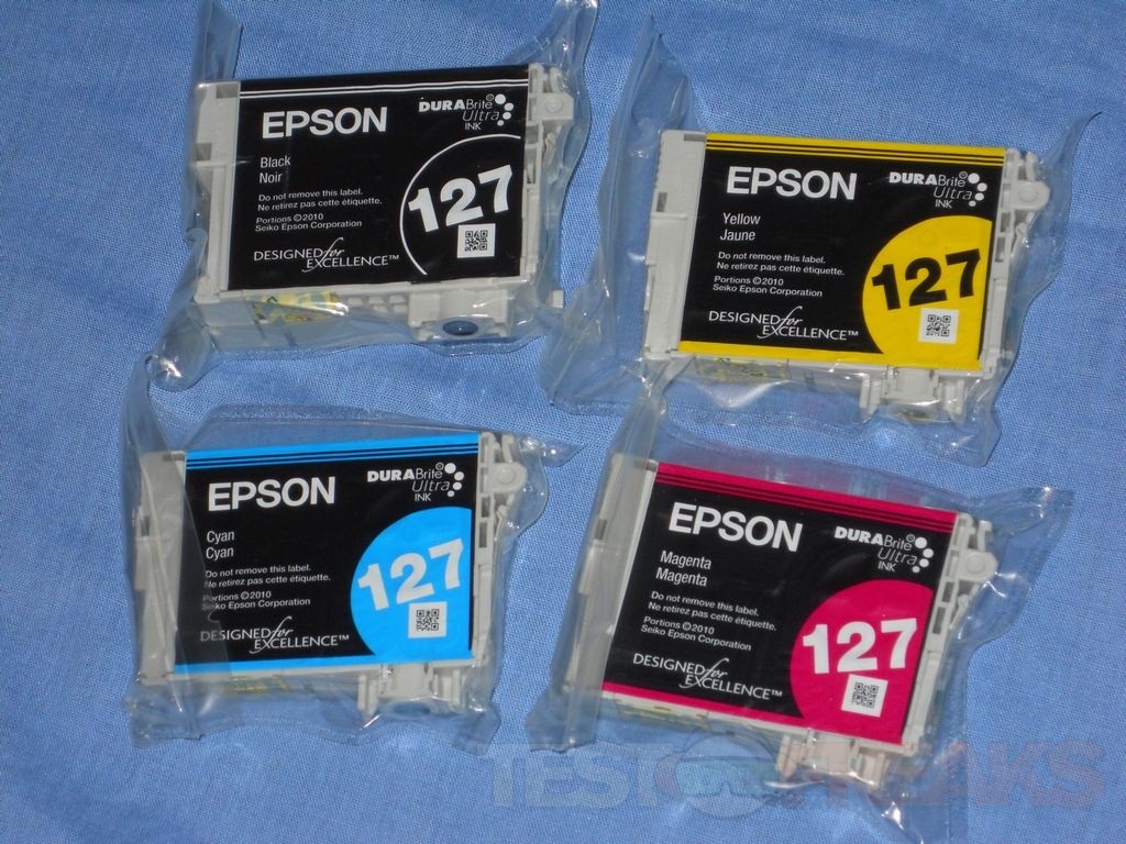Inside you’ll find the ink cartridges, documentation, driver/software CD, phone and power cables. The Ink Cartridges are regular size, not trial size. The black is actually a large capacity and it costs $21 to replace it, while the color cartridges are standard but only cost about $11 each.