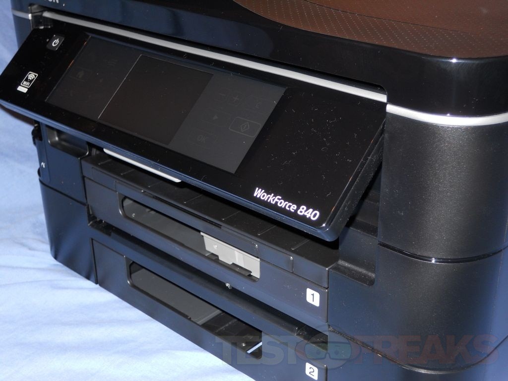 The printer is rather large in both height and width so you’re going to need quite a bit of room for it. The two paper trays are what make it taller of course. I’ve got two WorkForce printers in my home and the 840 is just as good as those in its construction. I like the design of the WorkForce printers, they look business like and classy, yet they would fit fine in any home.